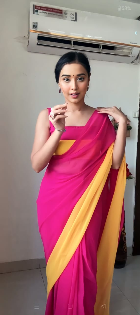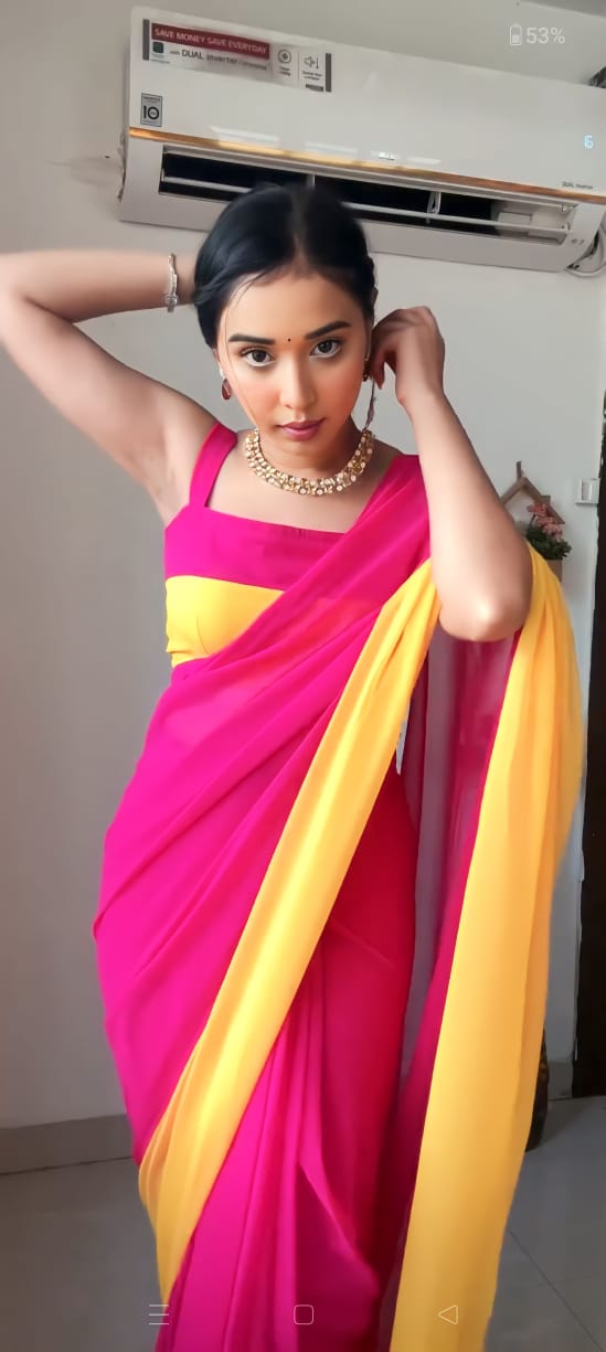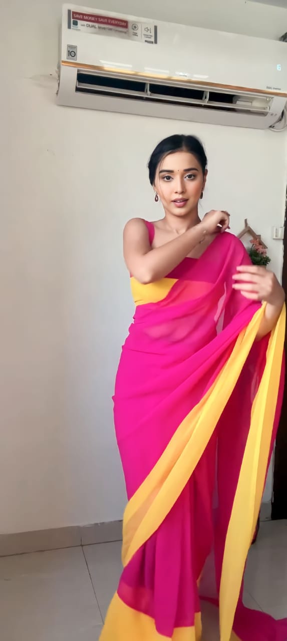 Pink and Yellow Colour 1-Min Georgette Ready To Wear Saree With Blouse Piece