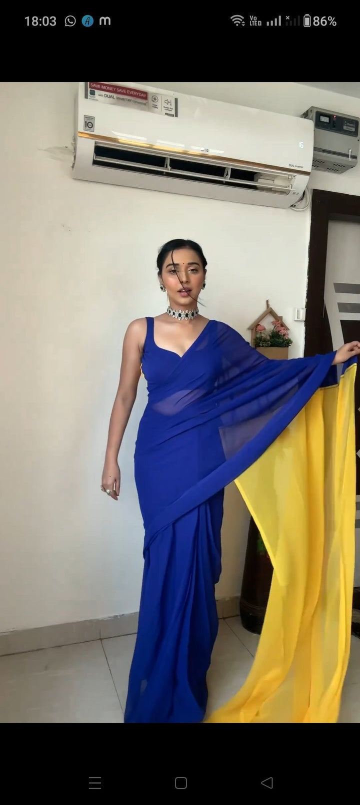 Blue and Yellow Colour 1-Min Georgette Ready To Wear Saree With Blouse Piece