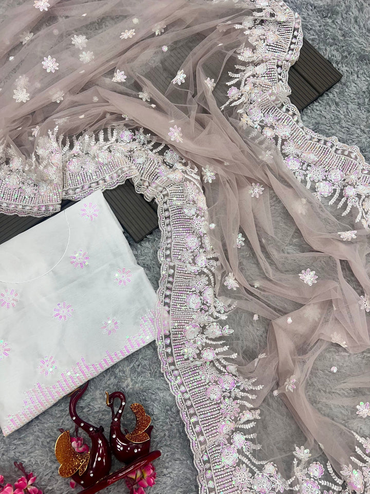 Baby Pink Beautiful Designer Soft Net Saree With Chikankari Work