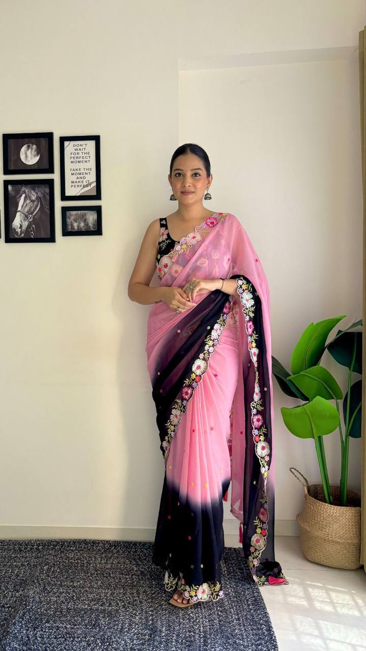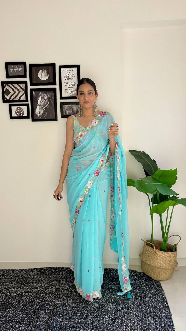 *Blouse Fabric & Work - Faux georgette With multi embroidery Sequins work (Unstitched)