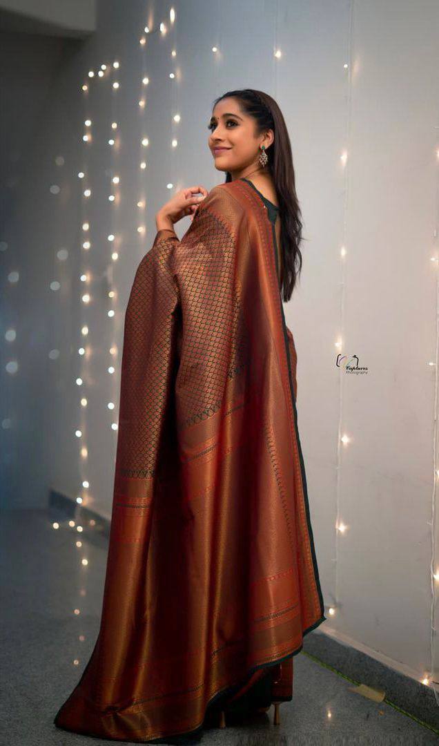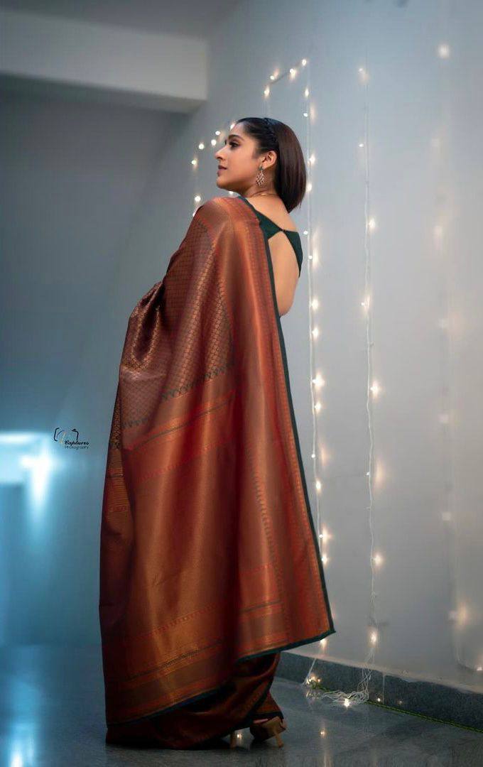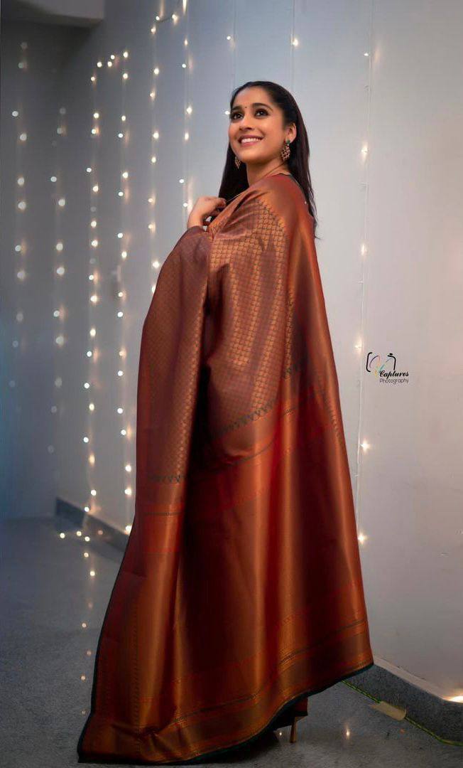 Brown Colour Kanjivaram Woven Silk Saree With Blouse Piece