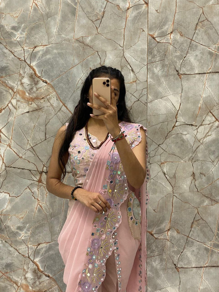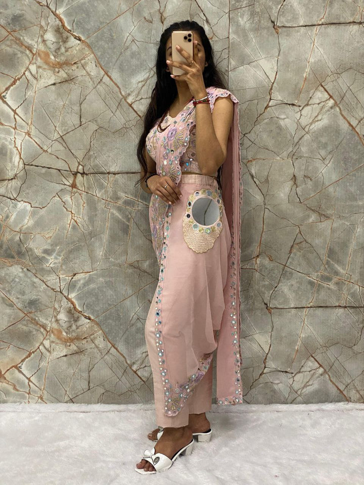 Designer Real Mirror Embroidered Ready To Wear Indo Western Dress