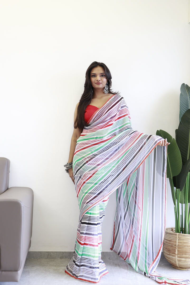 Ethnic 1-Minute Ready To Wear Green Georgette Saree