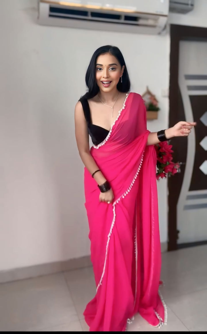 Eye-catching 1-Minute Ready To Wear Pink Georgette Saree
