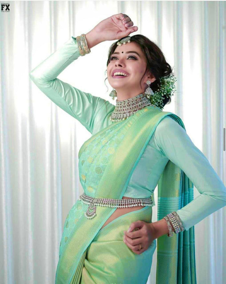 Light Green Colour Kanjivaram Woven Silk Saree With Blouse Piece