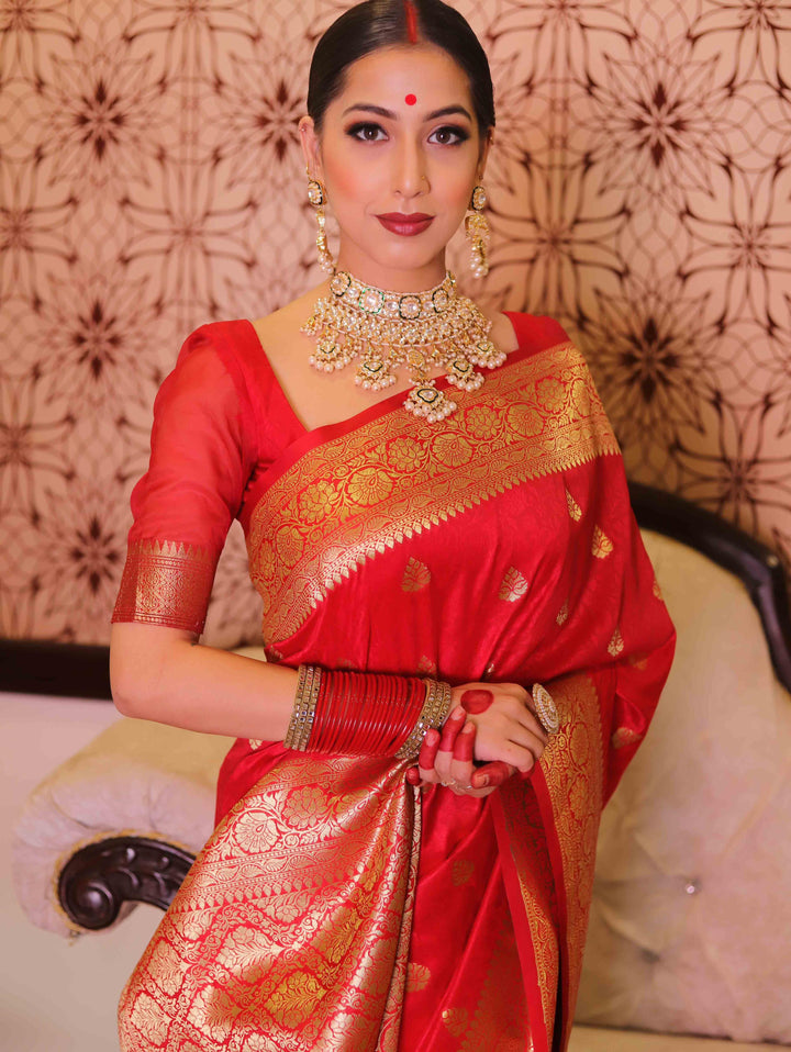 - The last image gives a detailed look of the blouse piece that comes with this saree (The model is wearing a blouse from our in-house wardrobe)