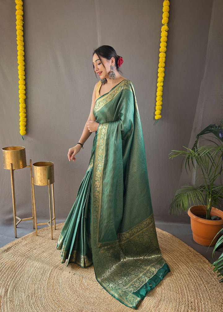 Green Soft Banarasi Silk Saree With Effervescent Blouse Piece
