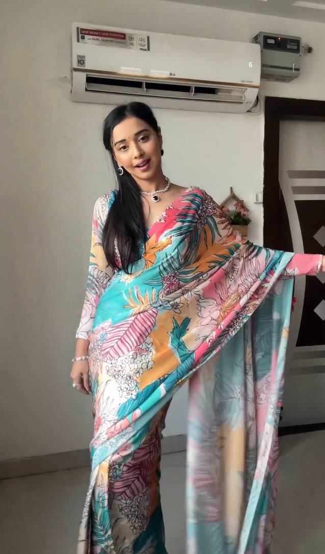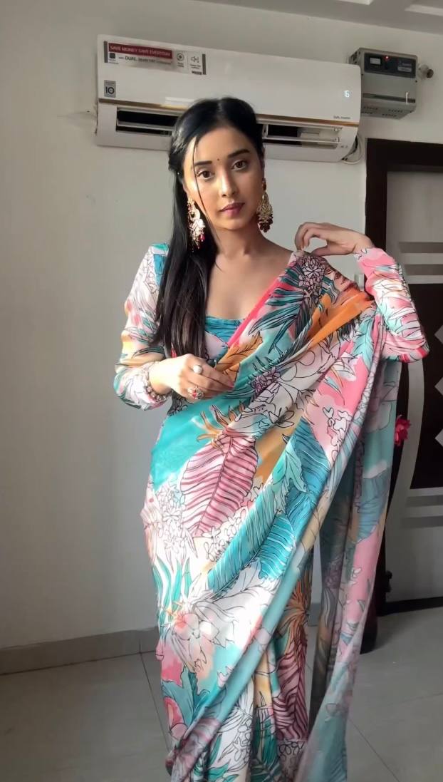 Sky Colour 1-Min Georgette Ready To Wear Saree With Blouse Piece