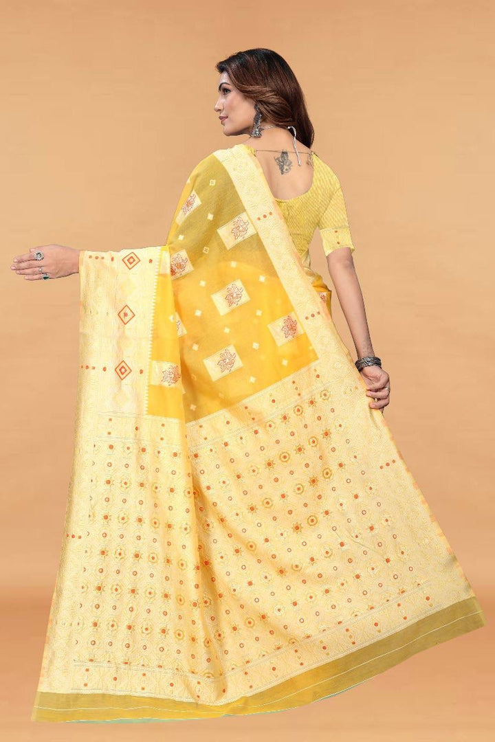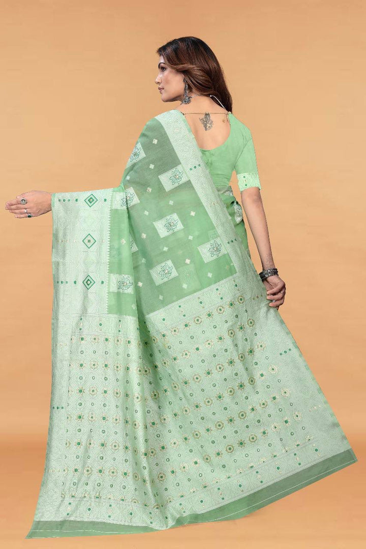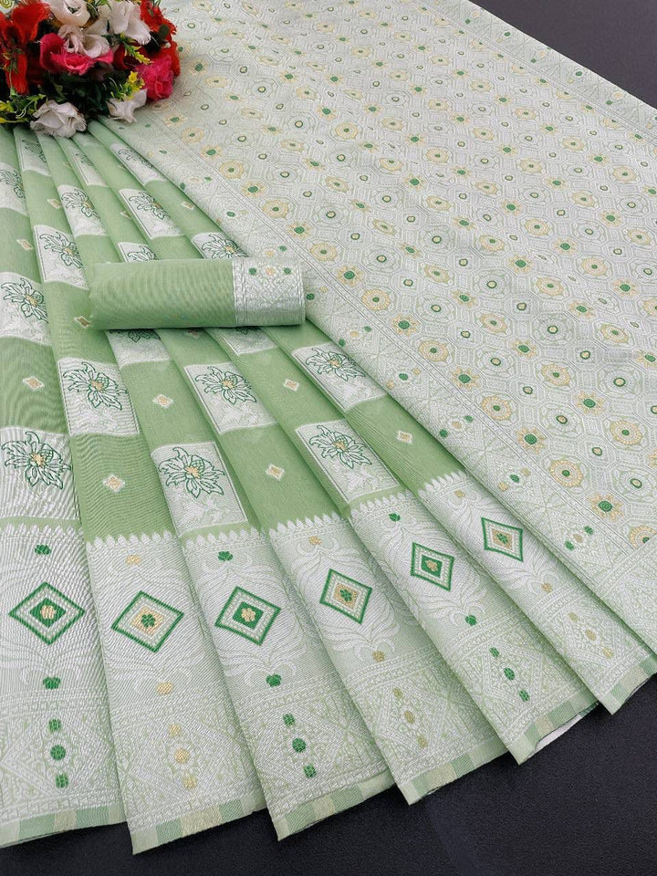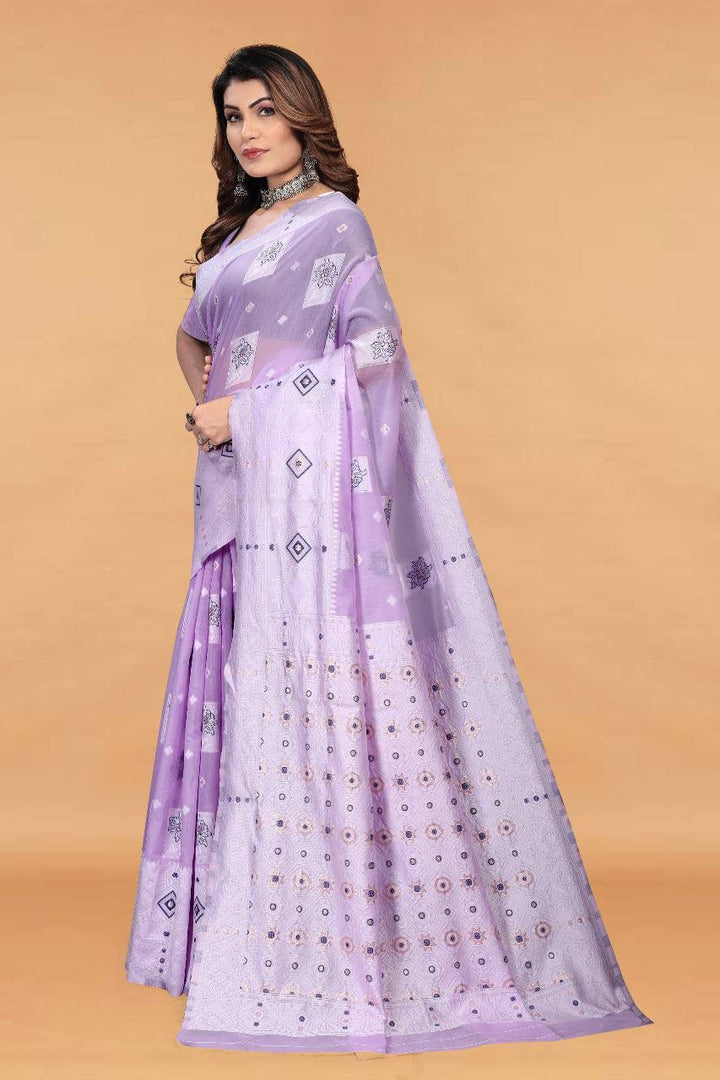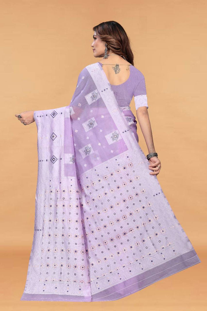 The pink color saree is designed with white resham and golden zari and copper zari made designer work all over the body. The pallu has white resham and golden zari and copper zari made designer work. white resham and golden zari and copper zari made designer border all along. blouse piece avilable.