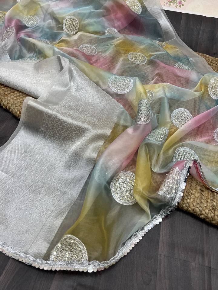 colour beautiful designer saree on havey tissue organza Fabric