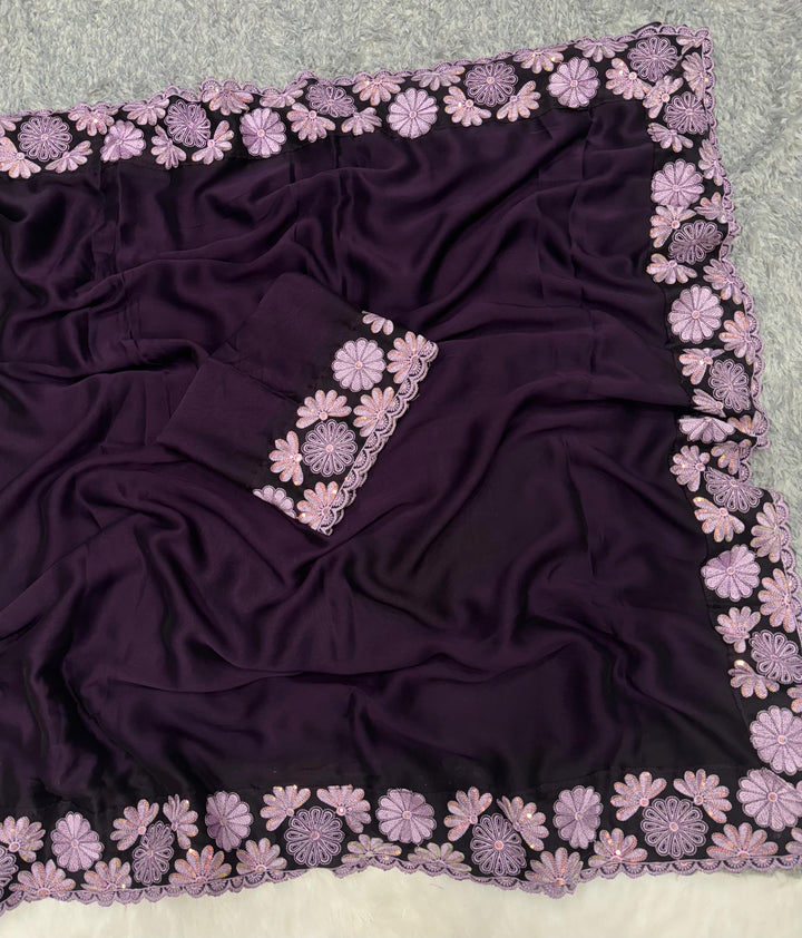 🤩A moment in time. like a million starts in the sublime sky, delicately handcrafted sequins work bring out the vibrancy of this purple silk saree.
