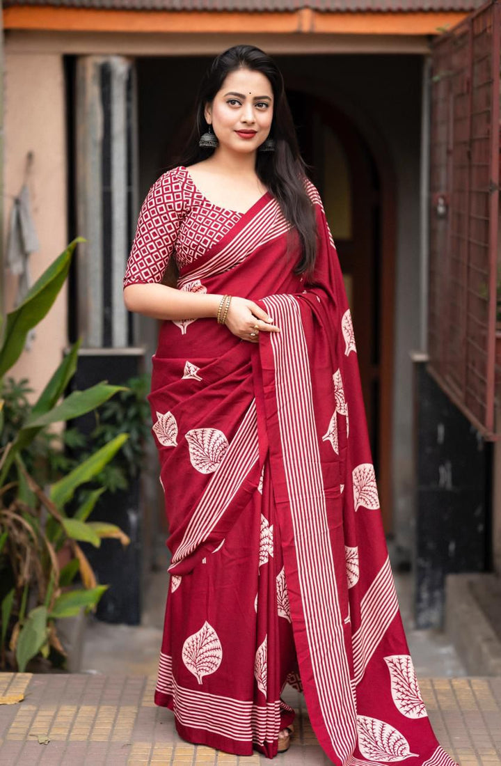 Quality- Soft Cotton Feel Batik Printed Saree.