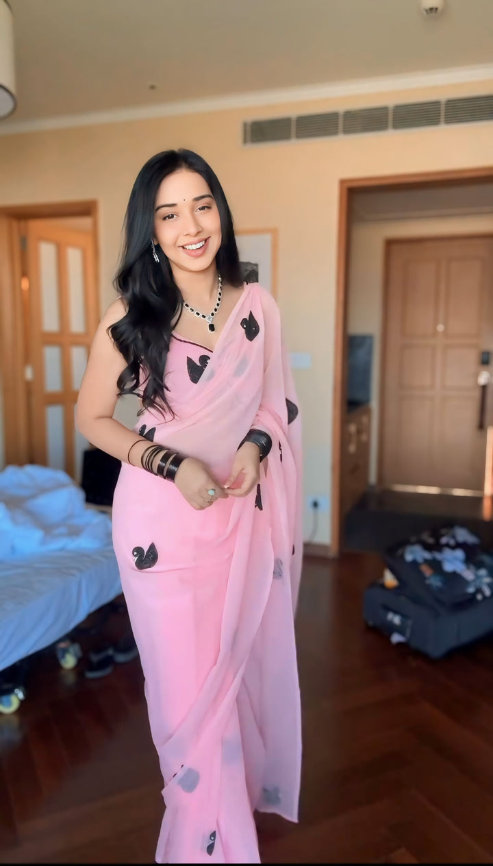 Ratatouille 1-Minute Ready To Wear Pink Georgette Saree