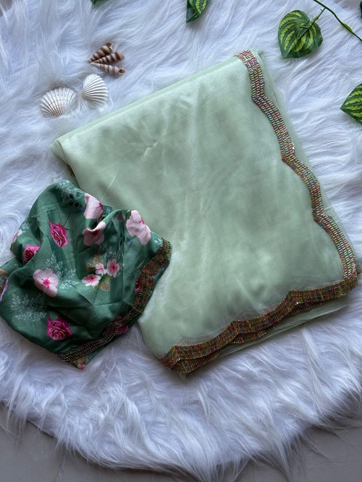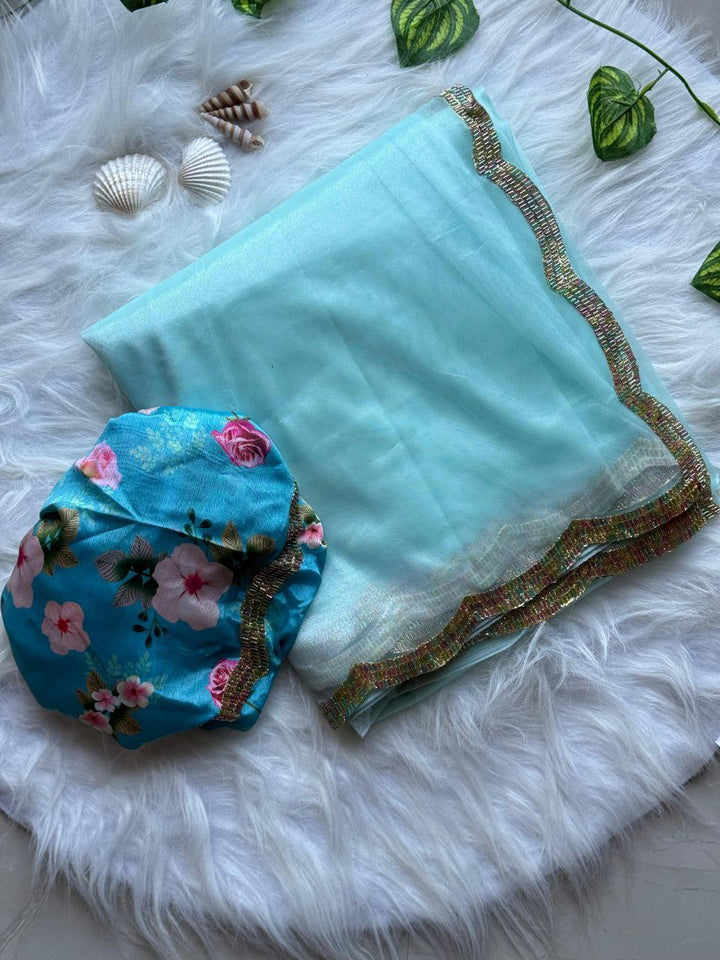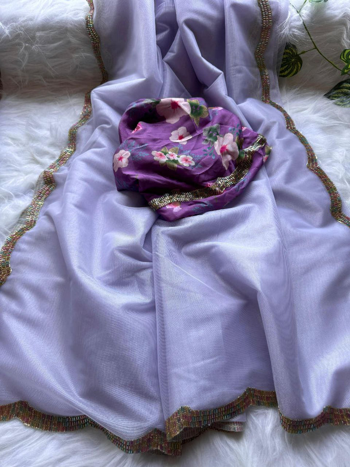 Soft And Shining Tissue Silver Net Party Wear Saree