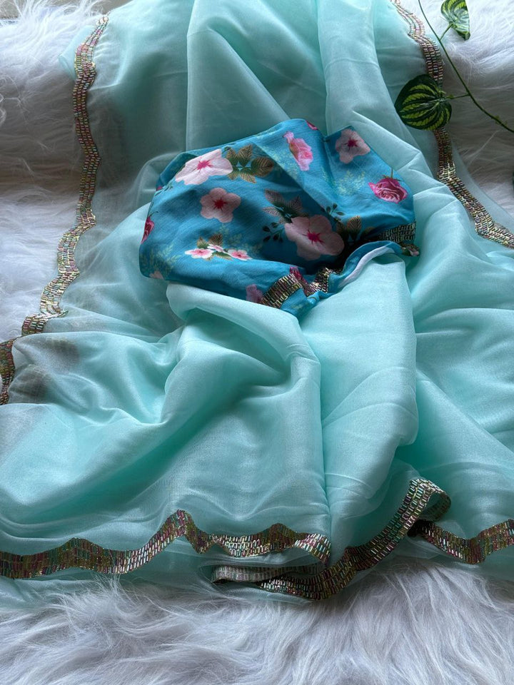 Ideal for special occasions and celebrations, this saree promises to make you the center of attention with its elegant design and rich detailing.