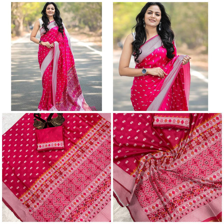 - Woven Banarasi Jacquard Saree (pink)